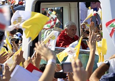 Joseph Ratzinger è arrivato sul lungomare salutando la folla dalla Papamobile, a bordo della quale si trovava anche il patriarca dei cattolici maroniti libanesi, Bechara Rai. Alla messa era presente anche il presidente della Repubblica, Michel Sleiman, cattolico maronita."Servire giustizia e pace in un mondo dove la violenza non cessa" è una "urgenza" e il Papa prega Dio di dare a questa regione, al Medio Oriente, dei servitori della pace e della riconciliazione. Perché tutti possano vivere pacificamente e con dignità". Questa, ha detto nella messa celebrata a Beirut, "é una testimonianza essenziale che i cristiani debbono dare qui, in collaborazione con tutte le persone di buona volontà".