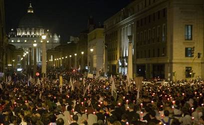 Papa Ratzinger ha impartito la sua benedizione ai circa quarantamila pellegrini che hanno partecipato alla fiaccolata organizzata dall'Azione Cattolica a 50 anni dall'apertura del Concilio.