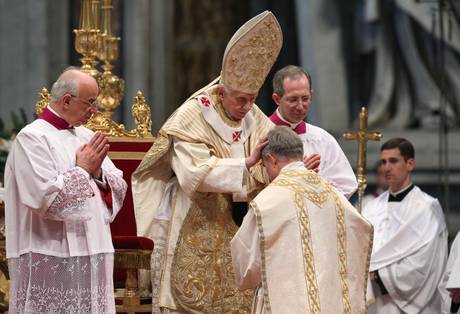 Cari amici, ciò riguarda anche noi. Ciò riguarda soprattutto voi che, in quest’ora, sarete ordinati Vescovi della Chiesa di Gesù Cristo. Se vivrete con Cristo, a Lui nuovamente legati nel Sacramento, allora anche voi diventerete sapienti. Allora diventerete astri che precedono gli uomini e indicano loro la via giusta della vita. In quest’ora noi tutti qui preghiamo per voi, affinché il Signore vi ricolmi con la luce della fede e dell’amore. Affinché quell’inquietudine di Dio per l’uomo vi tocchi, perché tutti sperimentino la sua vicinanza e ricevano il dono della sua gioia. Preghiamo per voi, affinché il Signore vi doni sempre il coraggio e l’umiltà della fede. Preghiamo Maria che ha mostrato ai Magi il nuovo Re del mondo (Mt 2,11), affinché ella, quale Madre amorevole, mostri Gesù Cristo anche a voi e vi aiuti ad essere indicatori della strada che porta a Lui. Amen.