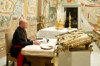 La preghiera è respiro, aria, pensiero, grido al Signore e amore per Dio. Questo susseguirsi di definizioni – contenute nei Salmi - è stato al centro della prima meditazione del cardinale Gianfranco Ravasi, presidente del Pontificio Consiglio della Cultura. Ieri pomeriggio nella Cappella Redemptoris Mater, dinanzi al Papa e alla Curia Romana, il porporato ha proposto un’immagine biblica per rappresentare il futuro della presenza di Benedetto XVI nella Chiesa, una presenza contemplativa, come quella di Mosè che sale sul monte a pregare per il popolo d'Israele che giù nella valle combatte contro Amalek:
