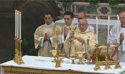 Proprio il coraggio - di camminare in presenza del Signore, con la Croce del Signore; di edificare la Chiesa sul sangue del Signore, che è versato sulla Croce; e di confessare l’unica gloria, Cristo Crocifisso. E così la Chiesa andrà avanti.