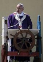 La periferia che diventa centro, gli ultimi che diventano i primi. E’ il “miracolo” compiuto da Francesco a Lampedusa. Il Papa doveva venire qui, lui stesso confida questa necessità del cuore. Doveva guardare, sentire, abbracciare chi soffre e chi si fa ogni giorno “buon samaritano” per gli ultimi. Alla Messa, dal palco, può scorgere le carcasse delle imbarcazioni dei migranti. E il suo pastorale – come il calice, l’ambone, l’altare – è realizzato con il legno delle barche che ogni giorno solcano il mare di Lampedusa. Simboli, come la scelta delle letture e i paramenti, che vogliono sottolineare la dimensione penitenziale della celebrazione. Il Pontefice inizia l’omelia indicando proprio il motivo per il quale si è recato a Lampedusa: l’ennesima tragedia della migrazione. Una notizia, ha detto, che è stata “come una spina nel cuore che porta sofferenza”, pensare a quelle barche che “invece di essere una via di speranza sono state una via di morte”: