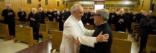 E proprio nell’impegno nei confronti del clero Francesco avanza, ancora parlando a braccio, una richiesta specifica al nuovo vescovo, alla vigilia del Giubileo della misericordia: “Ti chiedo – come fratello – di essere misericordioso. La Chiesa e il mondo hanno bisogno di tanta misericordia. Tu insegni ai presbiteri, ai seminaristi la strada della misericordia. Con parole, sì: ma soprattutto con il tuo atteggiamento. La misericordia del Padre che sempre riceve, sempre c’è posto nel suo cuore, mai caccia via nessuno. Aspetta. Aspetta. Questo ti auguro: tanta misericordia”.