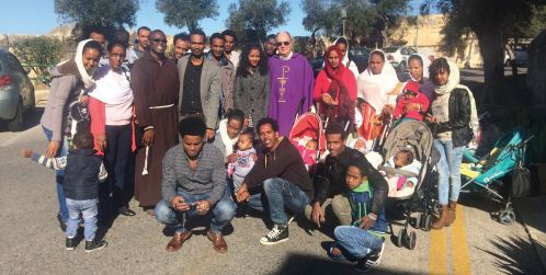In più la piccola isola, con più di 20.000 rifugiati ha uno dei numeri più alti di rifugiati procapite. Negli ultimi tre anni i frati cappuccini a Malta hanno ricevuto e accompagnato eritrei rifugiati.Molti di loro scappavano dalla povertà, dal regime totalitario e dalla mancanza di opportunità. Nel 2011 Tegle, uno degli eritrei rifugiati ha deciso di lasciare l'Eritrea e di cercare una vita migliore più sicura in Europa, proprio come avevano fatto diversi altri del suo villaggio. In primo luogo giunse in Sudan,poi affronta il rischio di un duro e infido viaggio attraverso il de-serto del Sara in direzione della Libia. "In Libia abbiamo avuto molti problemi, siamo stati messi in prigione, per essere rilasciati abbiamo dovuto corrompere i poliziotti, ciascuno ha dovuto pagare 1600 USD ai trafficanti per farci portare in Europa attraverso ìl mar Mediterraneo, alcuni sono morti nel mare" ci ha riferito Tegle. In risposta all'arrivo di molti migranti e alle difficoltà che essi incontrano, i frati cappuccini a Malta hanno iniziato un programma di sostegno ai rifugiati. Oltre a provvedere alle necessità di base, il programma prevede aiuto spirituale e psicosociale ai rifugiati. Fr. Philip OFMCap, il segretario delle missioni e il capo del programma mi ha spiegato gli obiettivi del programma che include l'assistenza spirituale ai rifugiati cattolici, provvedendo cure sanitarie, specialmente consulti psicosociali e educazione di base, come lezioni di inglese. Fr. Philip lavora con Vanja Vajagic, l'amministratrice del programma, originaria della Serbia. "Mi considero come un immigrante, perciò condivido il sentire dei rifugiati e la mia missione è supportarli nel loro viaggio". Così ci ha riportato Vanja, consulente di casi di tossicodipendenza. "I rifugiati fronteggiano diverse sfide che includono la mancanza di lavoro, discriminazioni razziali, conflitti culturali, barriere linguistiche e solitudine. Questo li porta all'abuso di sostanze, comprese le droghe e l'alcool". Nel recente passato molti rifugiati hanno perso la loro vita a causa della frustrazione. Tegle mi ha raccontato come uno dei rifugiati provenienti dall'Eritrea sono saltati da un ponte a causa della stanchezza e delle sofferenze. In questo caso il programma rifugiati dei cappuccini prevede un programma di consulenza trans culturale e un servizio di prevenzione dall'uso di droghe, con lo scopo di far integrare i rifugiati nella società maltese. I frati e Vanja sono sempre al servizio dei rifugiati. Qui ci sentiamo come una famiglia, apprezzati e curati dai frati cappuccini", ammette Tegle, mentre mangiamo injera, nel pasto serale preparato da uno dei rifugiati della famiglia. Secondo il programma dei frati maltesi per i rifugiati, il santuario cappuccino a Floriana è stato eretto a parrocchia per i migranti. Ogni domenica vi si celebra la Messa. I rifugiati preparano e guidano la liturgia. "Questo è un grande onore per noi come cappuccini, essere riconosciuti come frati al servizio dei migranti da parte della diocesi" ha affermato il Ministro Provinciale, fr. Martin. "Nei tempi duri migliaia di maltesi e altri europei migravano verso il Nord America e l'Australia, i frati li seguivano per provvedere ai bisogni spirituali e alla cura pastorale. Ora i rifugiati stanno arrivando da noi, dobbiamo rispondere come frati di questi tempi, amare e prenderci cura di loro come se fossero nostri fratelli e sorelle, poiché questo è il nostro carisma di cappuccini francescani". Martin e Philip hanno ringraziato la curia generale per aver supportato il programma sia a livello finanziario che fraterno grazie alla visita di Benedict dell'ufficio di Giustzia, pace e integrità del Creato.