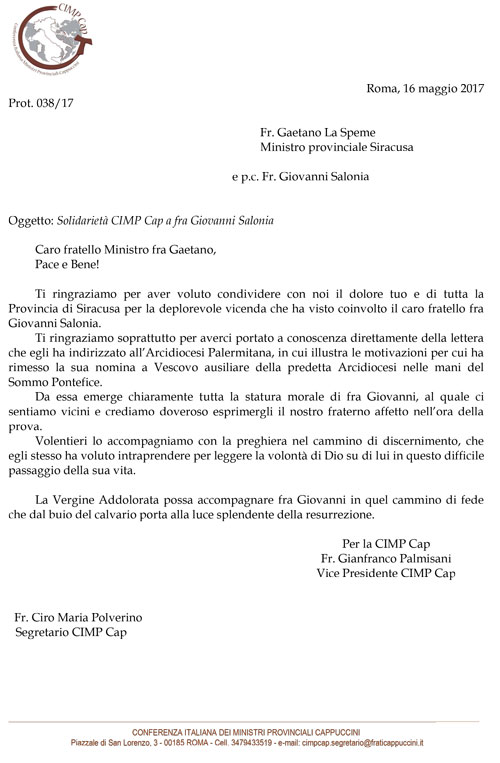 Solidarietà CIMP Cap a fra Giovanni Salonia