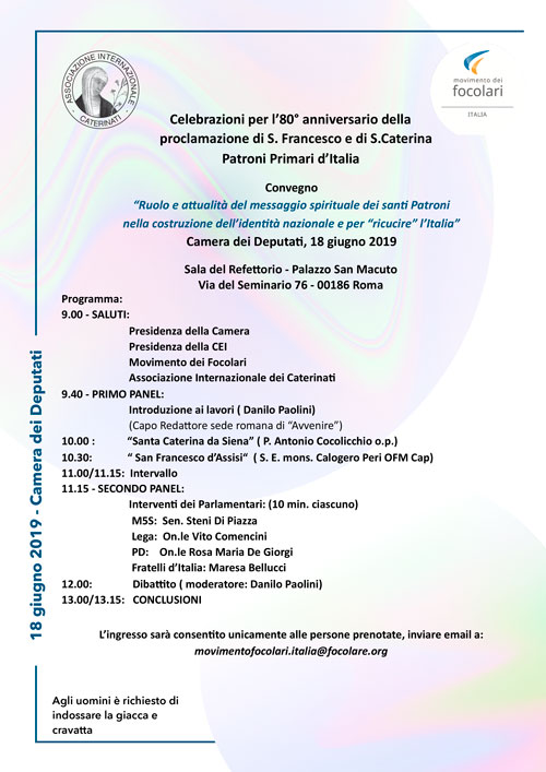 “Ruolo e attualità del messaggio spirituale dei santi Patroni nella costruzione dell’identità nazionale e per “ricucire” l’Italia” - 18 giugno 2019