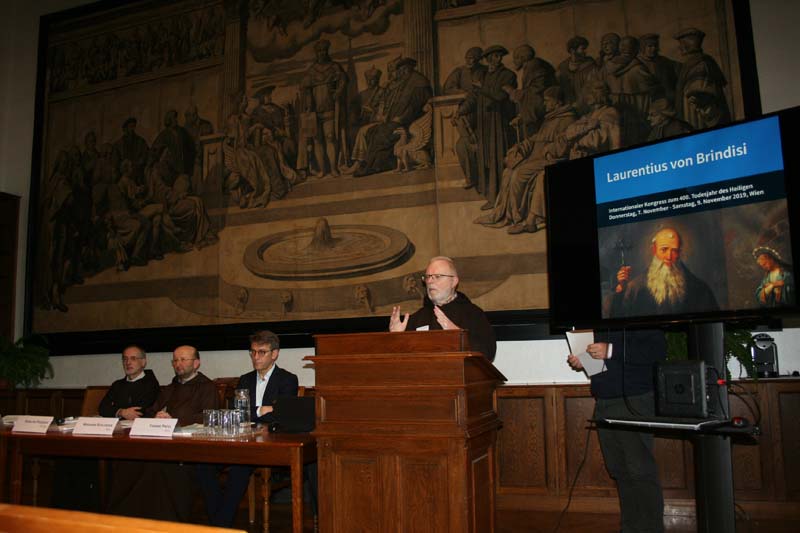 Su invito del Direttore del Dipartimento dell’Institut für Historische Theologie – Theologie der Spiritualität, Prof. Marianne Schlosser, annesso alla Facoltà di Teologia Cattolica dell’Università Statale di Vienna (Austria), si è celebrato l’“Internationaler Kongress: Laurentius von Brindisi”. In rappresentanza della CIMP Cap. figuravano fr. Gianluigi Pasquale, Docente nella Pontificia Università Lateranense della Provincia Veneta, con una Conferenza in Tedesco dal titolo: «Laurentius – Vordenker des heutigen Begrifss „Heilsgeschichte“?» («San Lorenzo da Brindisi: precursore dell’idea di “storia della salvezza”») e fr. Alfredo Di Napoli, della Provincia di Bari, che ha tenuto un’altra Conferenza dal titolo: «Brindisi al tempo di San Lorenzo e il suo odierno culto in Puglia».