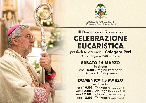 Comunichiamo che da domenica prossima, III Domenica di Quaresima, si potrà seguire la Celebrazione Eucaristica presieduta dal Vescovo S. Ecc. Calogero Peri, in diretta sulla pagina facebook della diocesi sabato 14 marzo alle ore 18,00 e in differita secondo gli orari qui di seguito riportati.