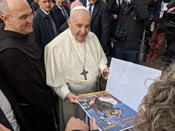 Durante la visita compiuta alla Porziuncola il 12 novembre Papa Francesco ha ricevuto in dono il calendario di Frate indovino 2022