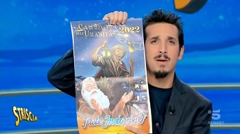 Lo stesso giorno durante la puntata di Striscia la notizia il calendario di Frate indovino 2022 è stato presentato ai telespettatori.