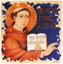 Giovanni Duns Scoto, francescano di origine scozzese, nacque fra il 1265 e il 1270 e morì nel 1308. La sua breve ed intensa esistenza fu tutta dedicata all’insegnamento, negli anni della controversia di natura dottrinale tra quanti parteggiavano per la sintesi aristotelico-cristiana di San Tommaso d’Aquino e quanti la contrastavano. Dopo aver compiuto i suoi studi, insegnò ad Oxford (1300-1302), a Parigi (1305-1307) e a Colonia nell’ultimo anno di vita. Venerato come beato nelle diocesi di Colonia e di Nola, il suo nome è inserito nel Martyrologium Franciscanum; Duns Scoto è stato beatificato da Giovanni Paolo II nel marzo del 1993.