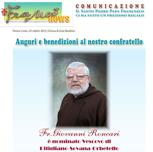 Fr.Giovanni Roncari è nominato Vescovo di Pitigliano-Sovana-Orbetello